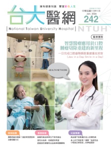 本印刷品使用環保油墨印製, 採用符合FSC環保紙印製。 NTUH 中華民國115年1月 Jan. 2026 242 擁有健康知識 豐富彩色人生 醫網 National Taiwan University Hospital 智慧醫療應用於口腔 腫瘤切除重建的新里程 一日完成口腔齒顎顏面重建重拾笑容 (Jaw in a Day; Smile in a Day) 發燒話題 專題報導 兒童專欄 肩膀疼痛怎麼辦?淺談常見原因與 治療保養方式 高血壓不是專屬於成人的慢性病 身上的不明瘀青?揭開「免疫性血 小板缺乏紫斑症」的神祕面紗 缺鐵性貧血與再生不良性貧血 急性白血病,從絕望到希望 認識急性骨髓性白血病與相關藥物 醫療團隊 HEALTH NETWORK 中華民國89年9月創刊 (Jaw in a Day; Smile in a Day) 242 中華民國115年1月 Jan. 2026 中華民國89年9月創刊 242 擁有健康知識 豐富彩色人生 醫網 National Taiwan University Hospital 發 行 人: 余忠仁 召 集 人:婁培人 總 編 輯: 楊志偉 執行編輯:詹其峰 編輯顧問: 李美美、蕭輔仁、盤松青、 洪俊銘、童寶玲、詹智傑、 王振穎、詹其峰、吳嘉峯、 邵幼雲、陳沛裕、蔡紫薰、 黃俊達、曾啟新 編輯企劃: 網頁工作小組 健康教育中心 蕭靜如 攝 影: 謝其男、林依伶、洪敏倫、 吳德容、林俊穎 台大醫網電子檔 及電子書 臺大醫院 Facebook 臺大醫院官網 出 版 者: 國立臺灣大學醫學院 附設醫院 地 址: 臺北市中正區常德街1號 二東健康教育中心 電 話: (02)2356-2114 網 址: https://www.ntuh.gov.tw (衛教天地) 設計印刷: 加斌有限公司 電 話: (02)2325-5500 傳 真: (02)2706-7272 NTU NTUH 一日智完慧成醫口療腔應齒用顎於顏口面腔重腫建瘤重切拾除笑重容建的新里程