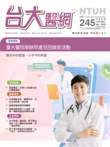 骨科部 陳沛裕醫師 vol.245 5 當意外突然發生,對患者與家人而 言,最難熬的往往不只是傷痛本身,還 有那段與時間賽跑、充滿未知與焦慮的 過程。從送抵急診的那一刻,到加護病 房中的每一次病情變化,家屬承受的是 擔憂與等待,患者經歷的則是身體與意 志的雙重挑戰。本期的專題報導聚焦於 外傷重症照護,「外傷復甦急救」介紹嚴 重外傷病人抵達急診後,醫療團隊如何 在最短時間內完成評估、止血、穩定呼 吸循環與安排後續處置,爭取黃金救援 時機。「創傷性腦損傷照護團隊」則進一 步呈現本院如何整合神經外科、重症醫 學、復健、護理、營養與呼吸治療等專 業,讓腦創傷病人的早期康復從「等待」 走向「啟動」。而「疼痛、躁動與譫妄的 藥物治療」,則引領讀者認識創傷加護病 房中常見且彼此交互影響的三大挑戰, 了解藥物治療如何在精準平衡中,協助 病人更安全地度過危險期,並提升後續 復原品質。 除了外傷重症專題,本期內容也涵 蓋民眾日常生活中常見且重要的健康議 題。從早產兒回娘家活動,到兒童頭部 外傷、親職壓力、乾眼與乾燥症警訊、 ADHD用藥、以及金山分院牙科診助的 工作分享與社工師筆下病痛下的家庭故 事,都讓我們看見醫療不只是診斷與治 療,更包含預防、衛教、理解與陪伴。 無論是協助家長判斷孩子撞到頭後是否 需要送醫,提醒民眾留意被忽略的慢性 症狀,或從第一線照護故事中體會團隊 合作與人文關懷,這些文章都共同展現 了醫療在不同場域中的多元面貌。 醫療的核心,不僅是延續生命,更 是陪伴病人與家庭走過脆弱與艱難的時 刻。期盼本期台大醫網能讓讀者在獲得 健康知識之餘,也更看見專業背後的溫 度,與照護的力量。 生命, 復原 以專業守護 以溫暖陪伴 編者的話
